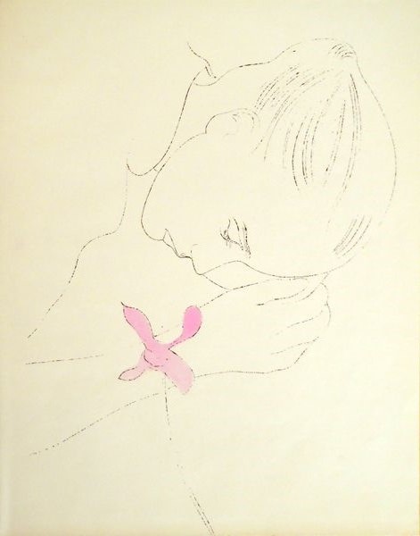 Three of the blotted line drawings on this cover can also be found in Warhol’s ‘A Gold Book’ (1957): the sleeping girl, the little boy top right on the cover, and the bird. In a Schiaparelli ad for Vogue Warhol also drew a unicorn – not exactly the same unicorn as on the LP cover – but also 1957.
