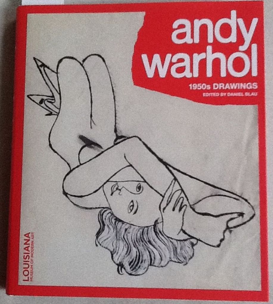 Original Warhol drawing, mirrored image and knees pointing up, on the cover of the exhibition catalogue “From Silverpoint To Silver Screen”, Daniel Blau, 2013.