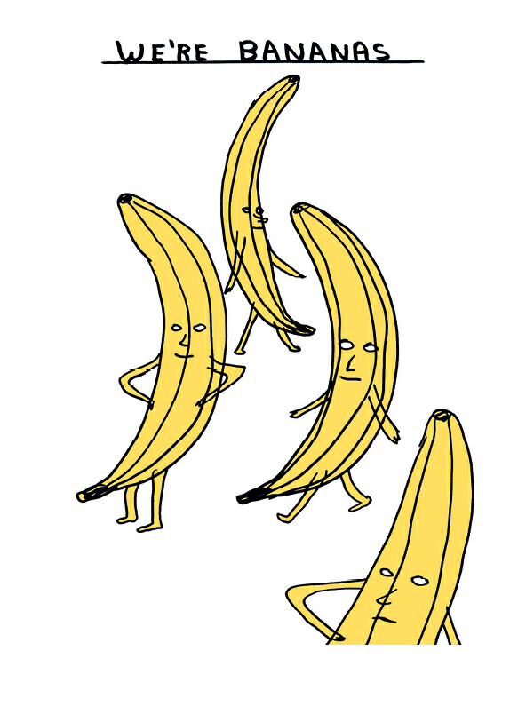 Another Warholian lesson: never waste a good idea. The same walking banana from the Castle Face album can be seen in the drawing “We’re bananas” published in Shrigley’s hilarious book “How Are You Feeling? At The Centre Of The Inside Of The Human Brain’s Mind” (Canongate Books, 2012)